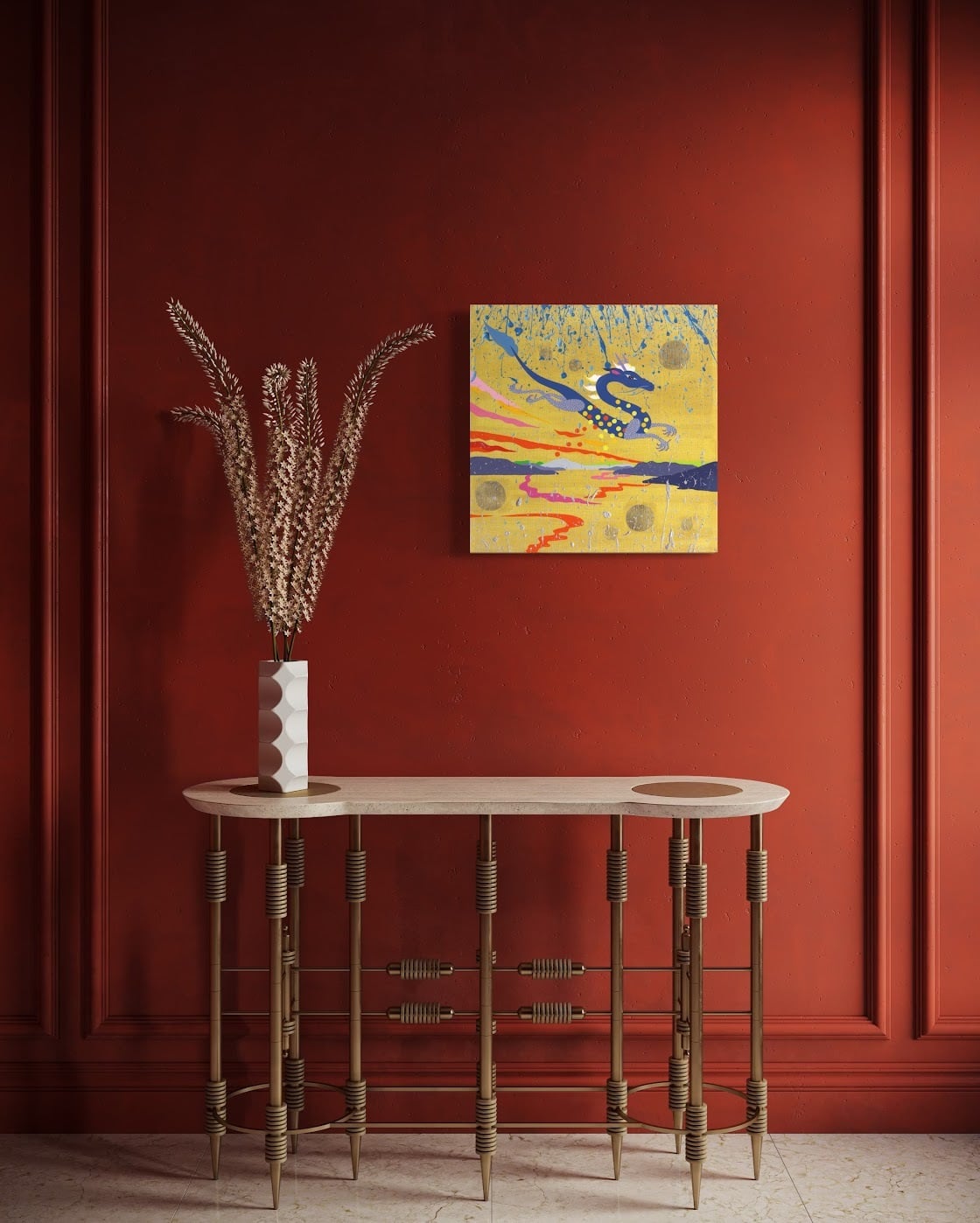 夕暮れから新しい朝へ、移ろう時間の流れを龍に重ねて描いた作品です。