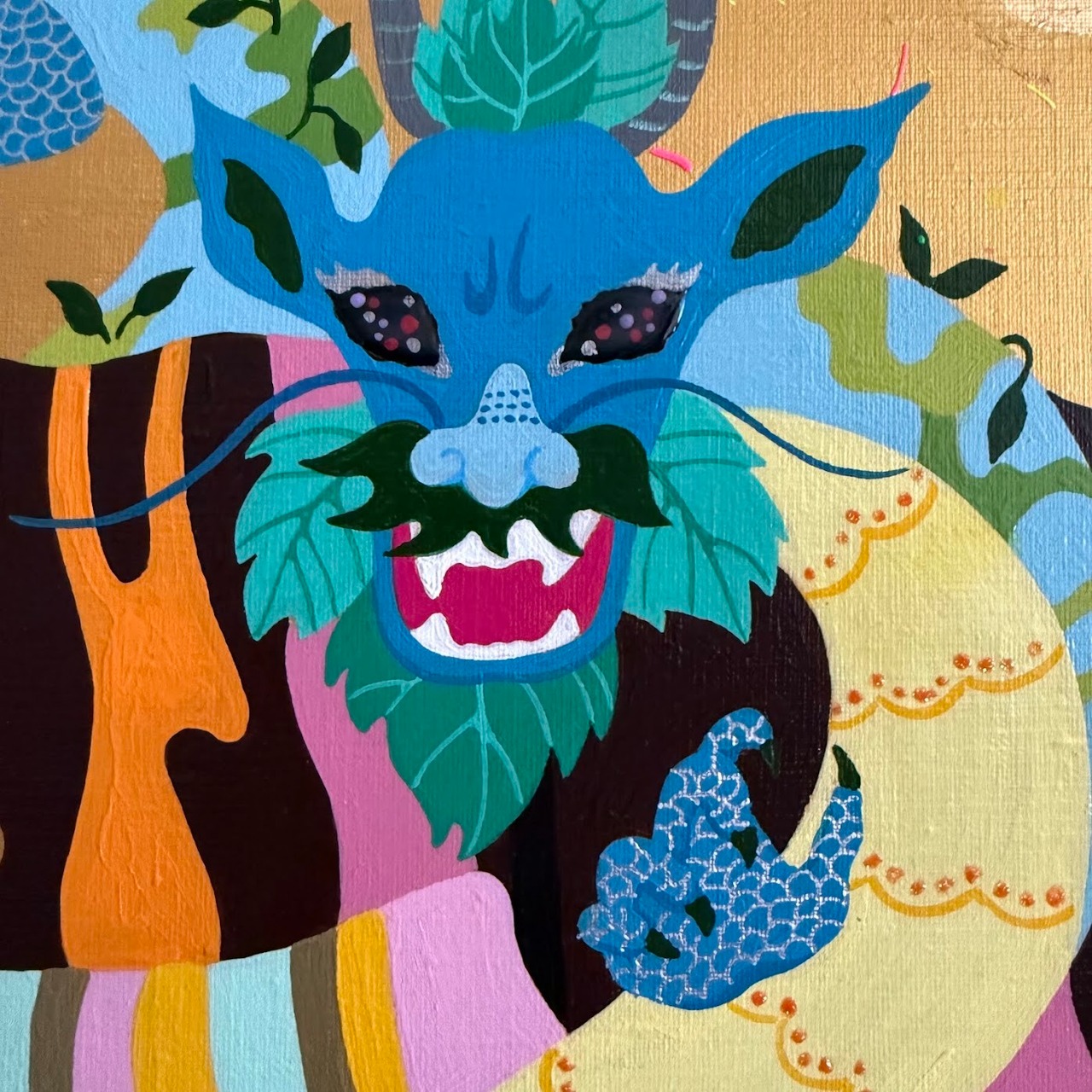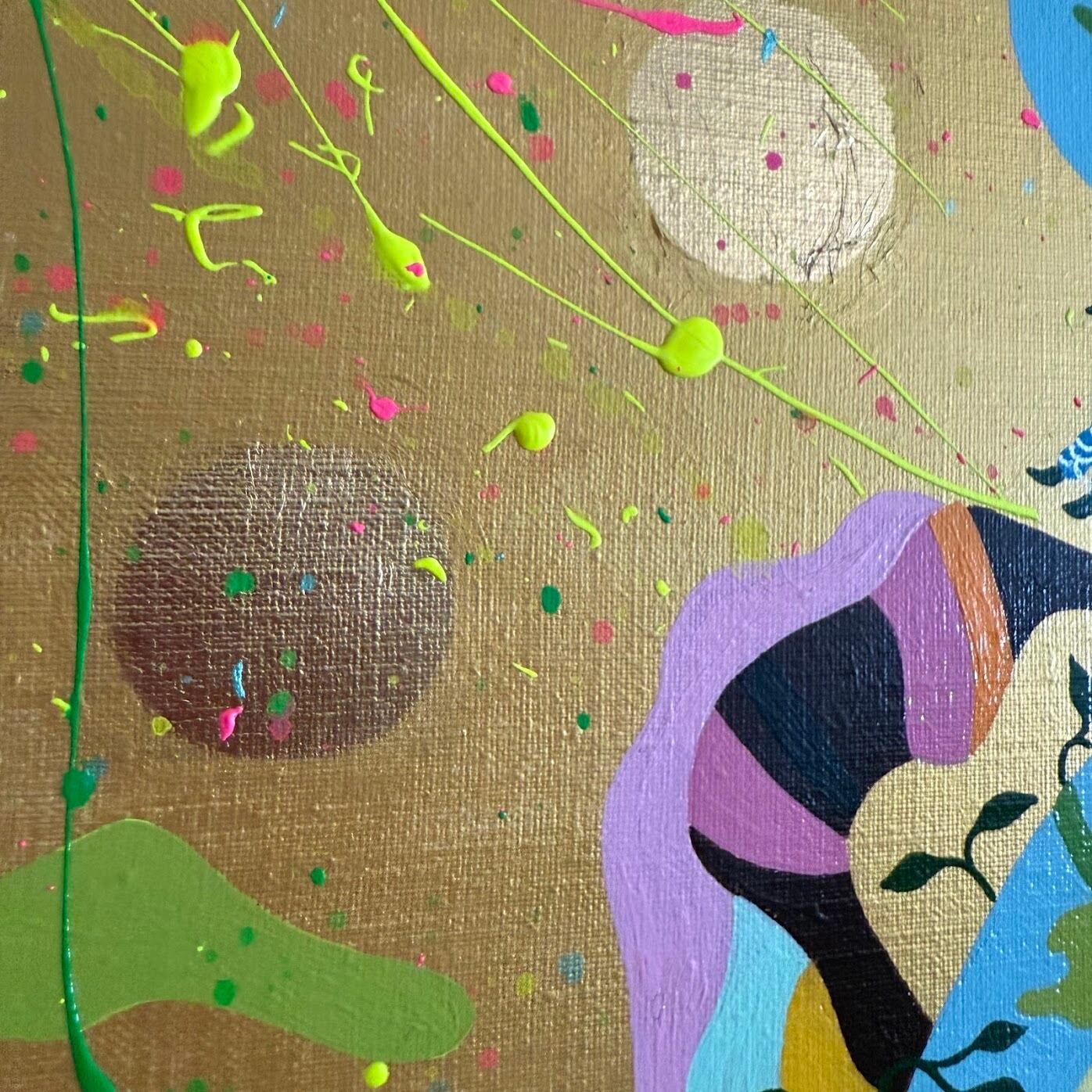 技法:Acrylic on canvas, 部分的に金箔, mixed media