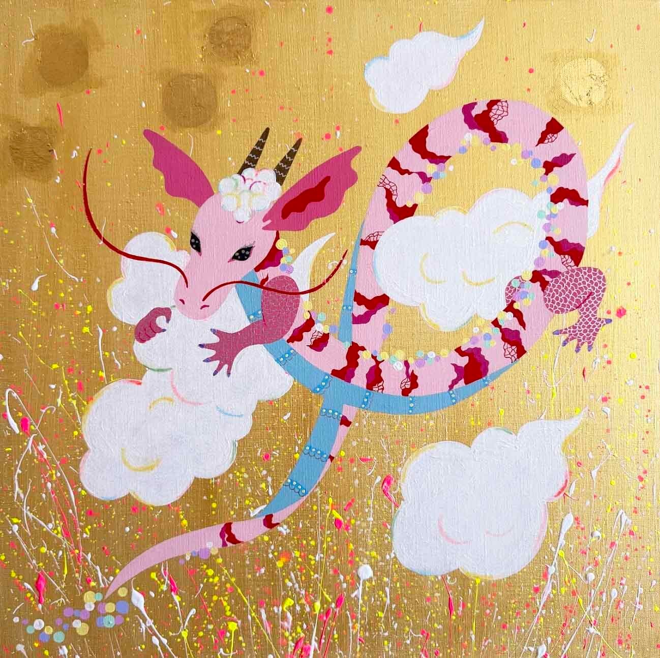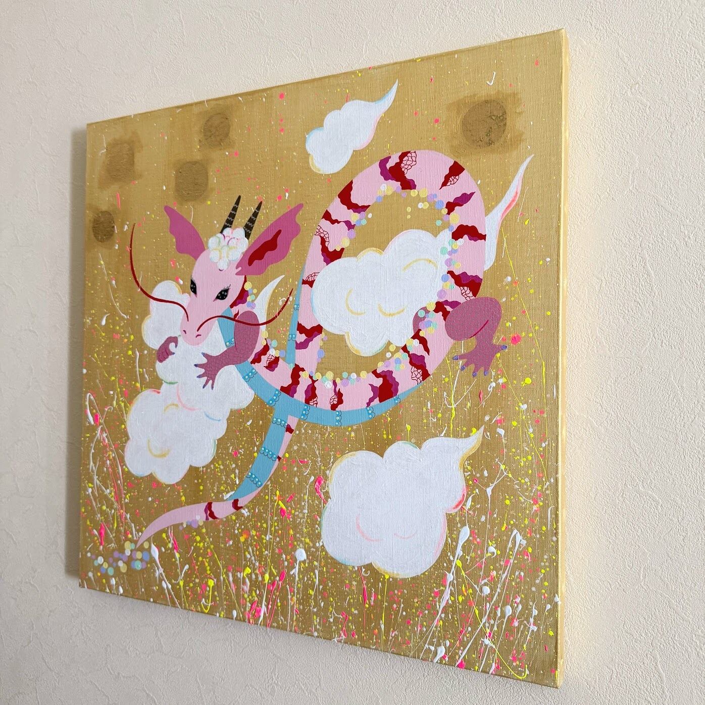 技法:Acrylic on canvas, 部分的に金箔, mixed media