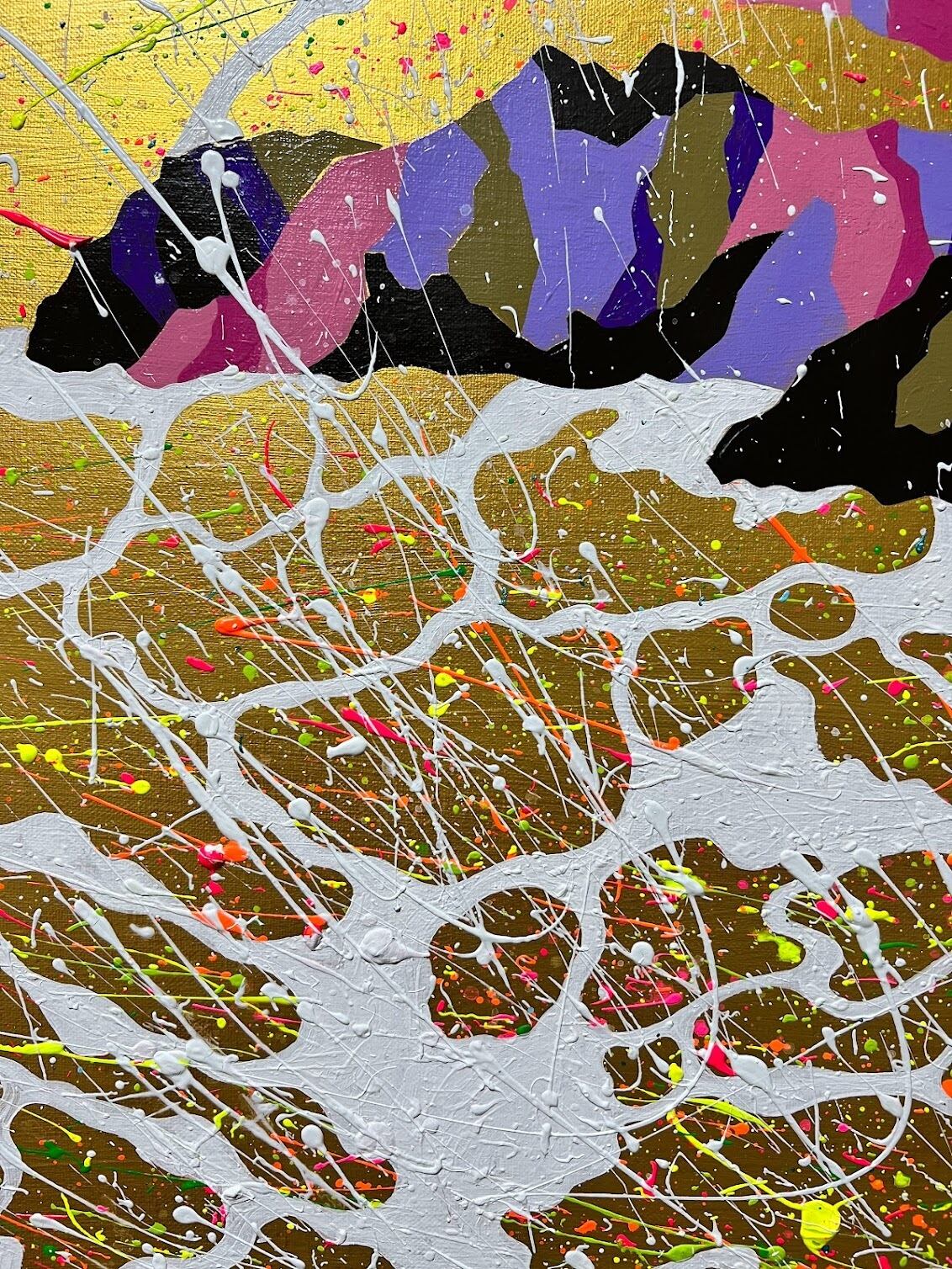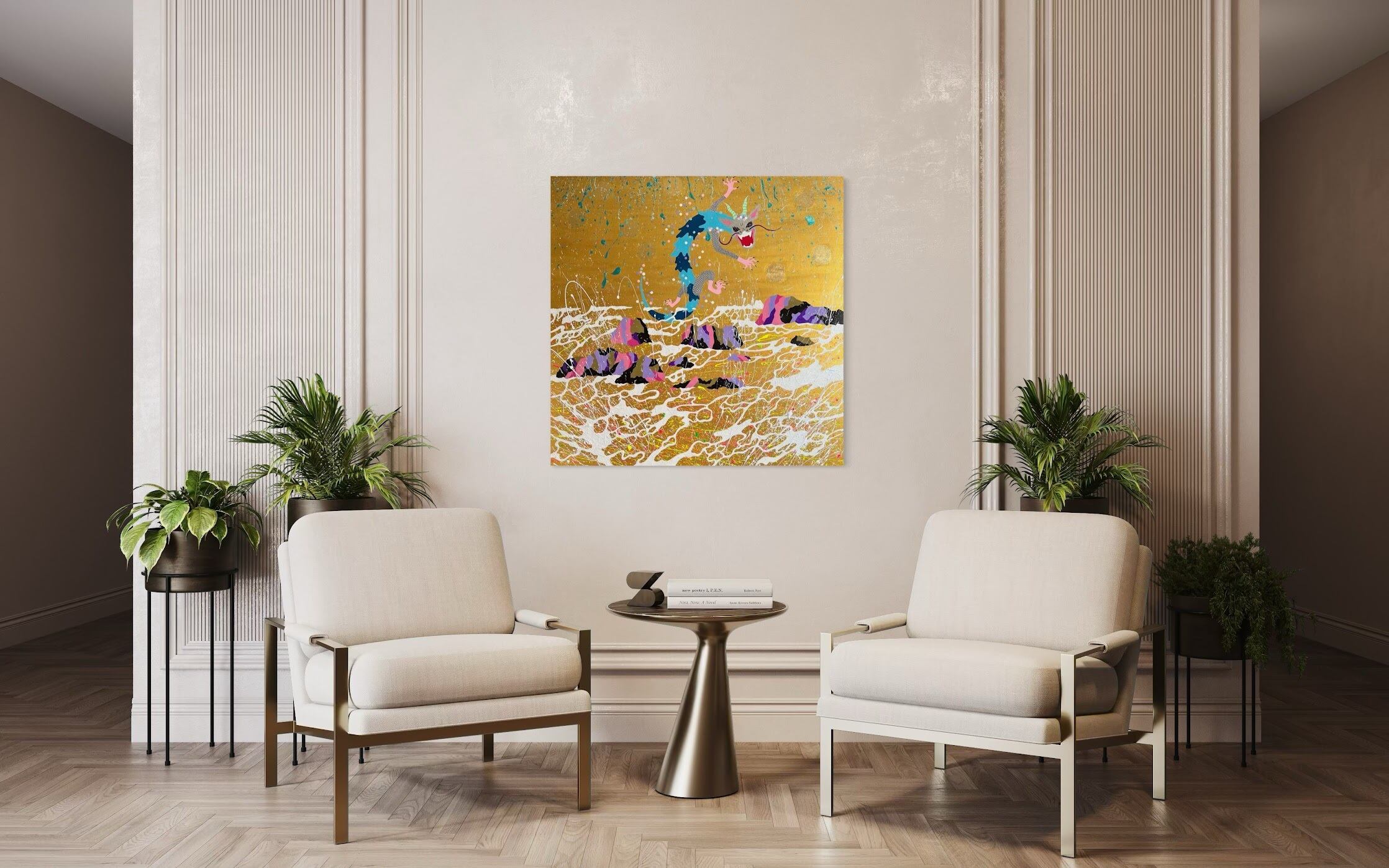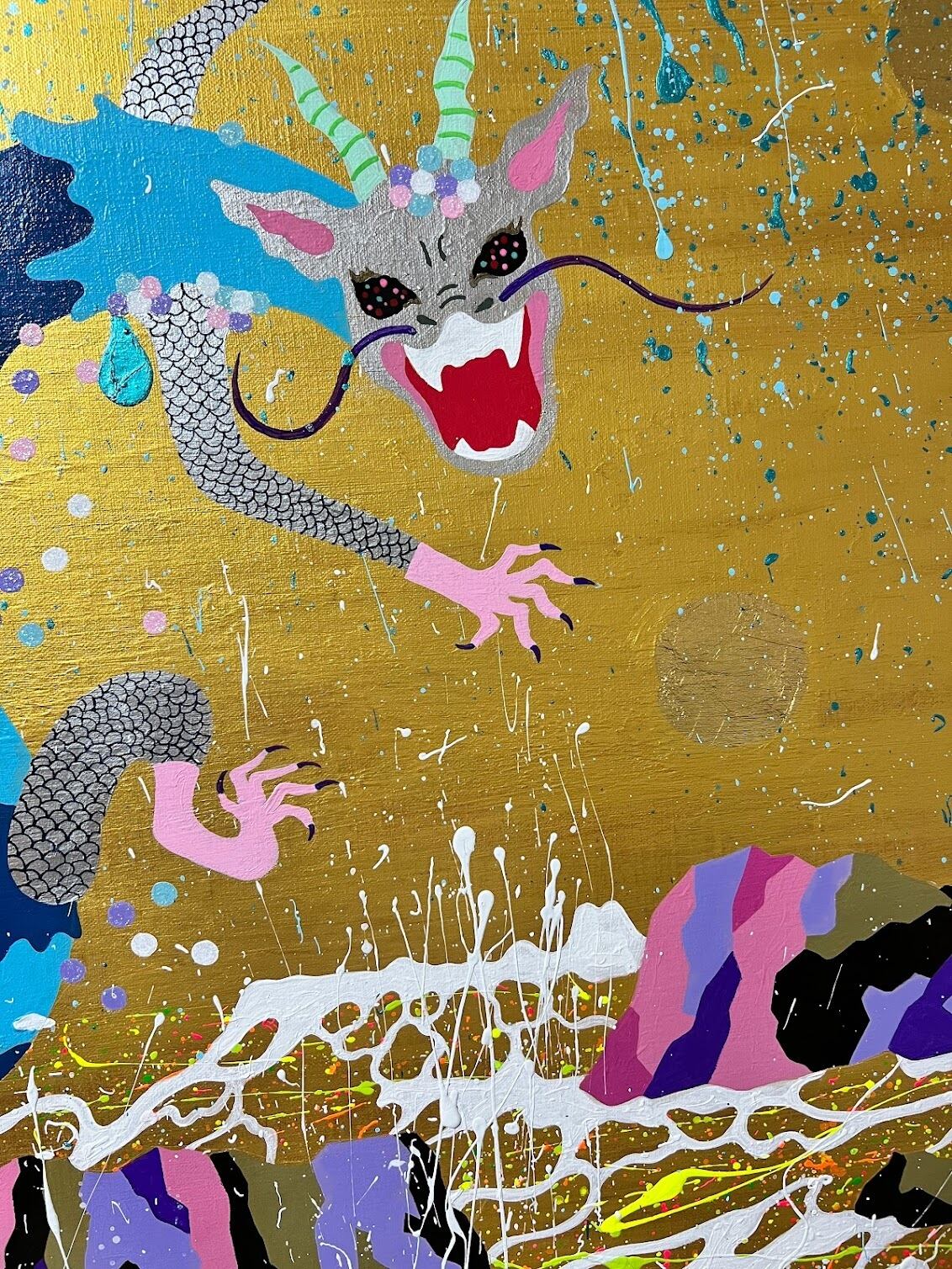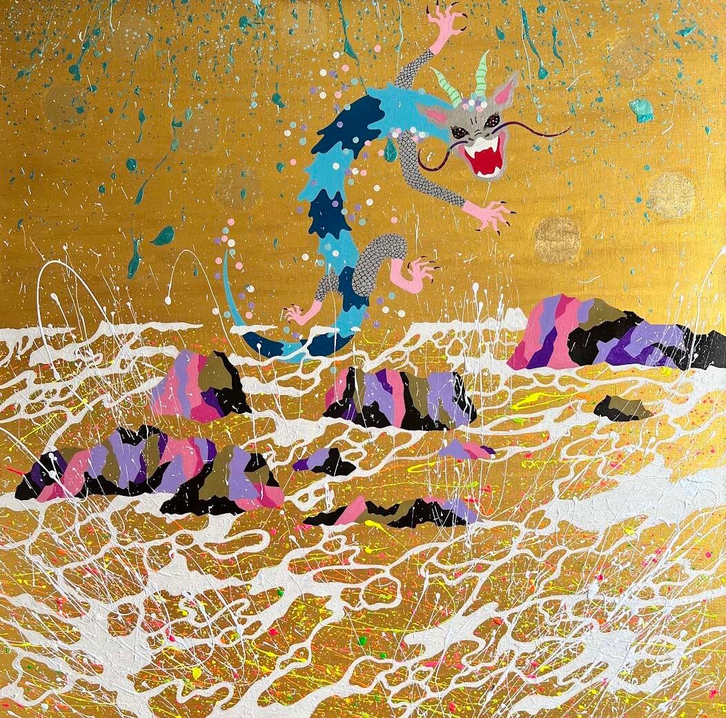 技法:Acrylic on canvas, 部分的に金箔, mixed media