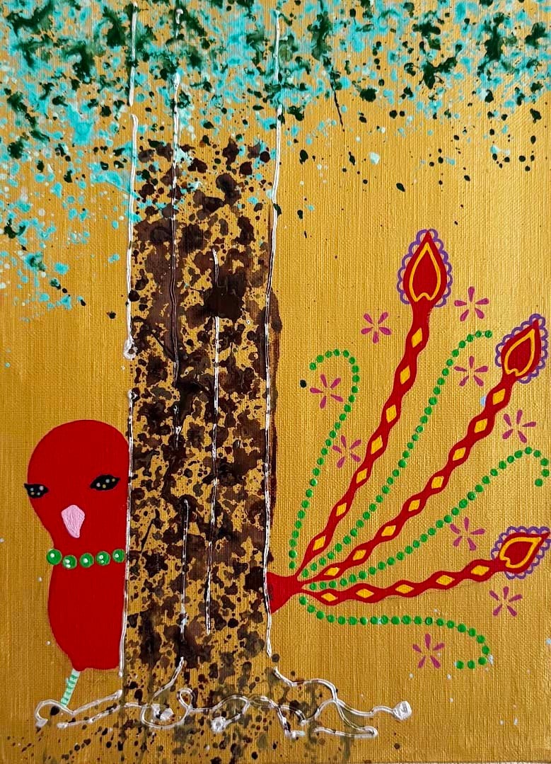 南を守る朱雀の存在を思い描いて描いた作品です。