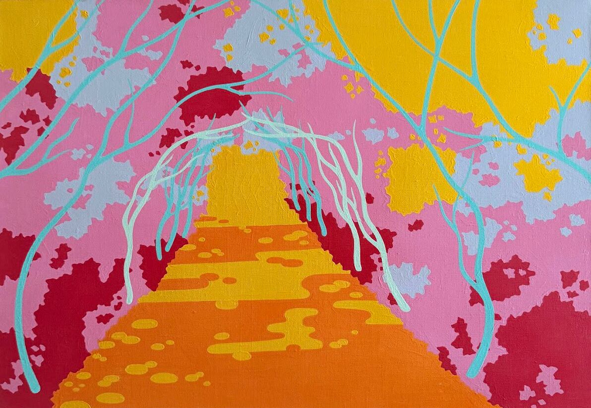 ふと顔を上げると、木々の枝がトンネルのように道を包み込んでいる。