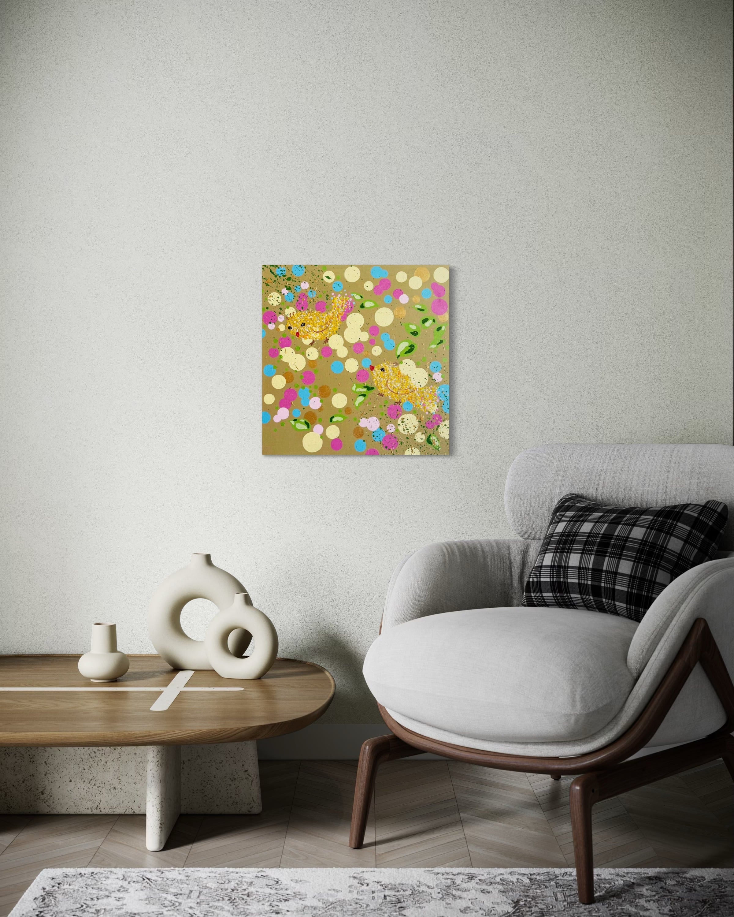 ふわりふわりと舞う2羽の黄色い鳥たち。